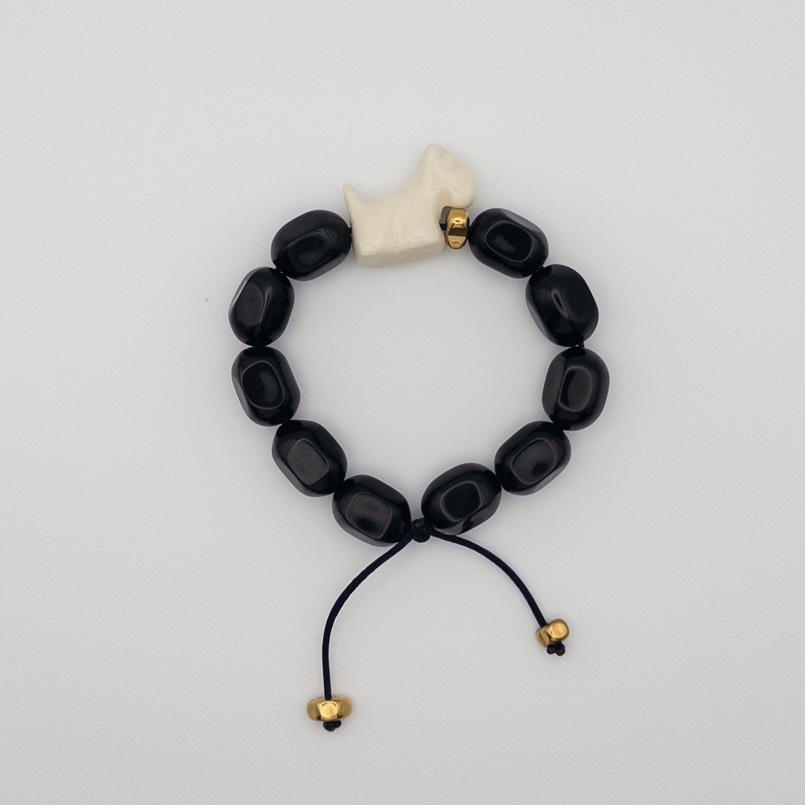 Браслет з керамічним песиком ручної роботи та натуральним камінням — стильний і незвичайний аксесуар для яскравих образів. Легкий і зручний, цей браслет стане вашим улюбленим акцентом.